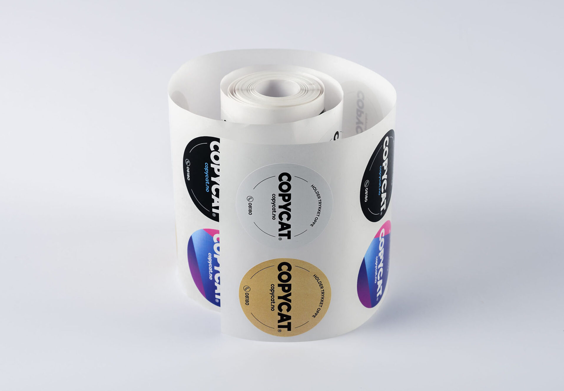 Vi har alle mulige etiketter i alle størrelser, på rull, figurskjært, elektrostatiske for å nevne noen. Høy kvalitet og holdbarhet, sjekk ut vår nykommer; UV-etiketter!